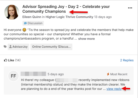 - Click the discussion subject to see the full thread or click 'View Reply' to get directly to the latest post.
