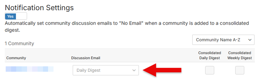 - Note: For consolidated digests, make sure to set the Discussion Email dropdown to "No Email."