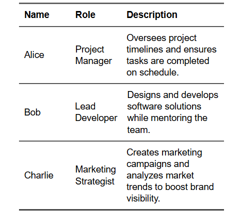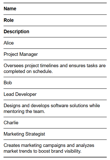 In some cases, like the example above, you may not want your columns to stack. Some table designs or content do not lend well to stacking and can make the information seem confusing. If this is the case for you, please follow the steps below to create a non-stacking table.
