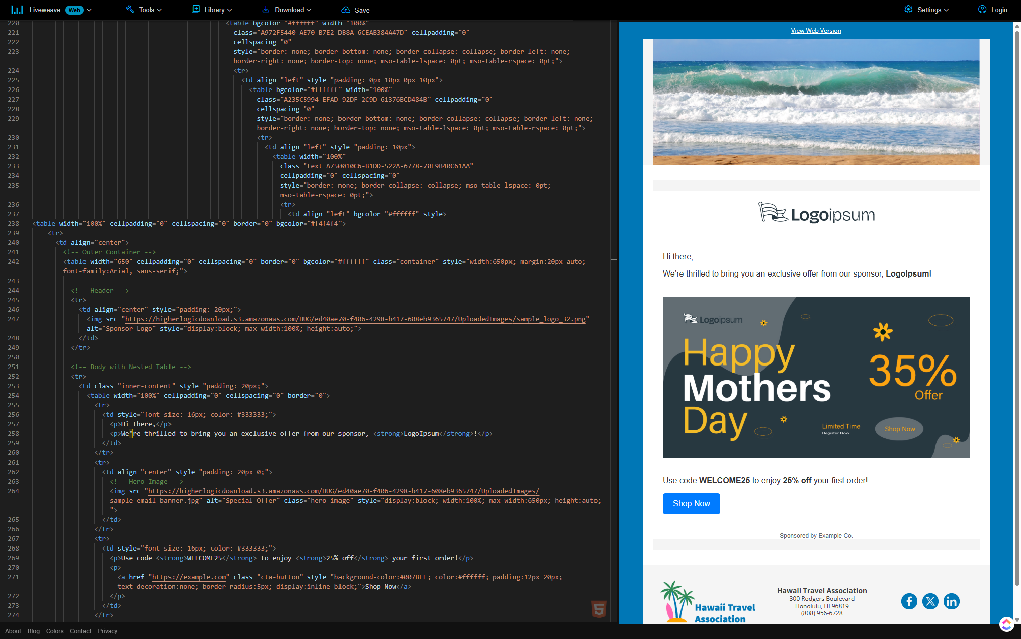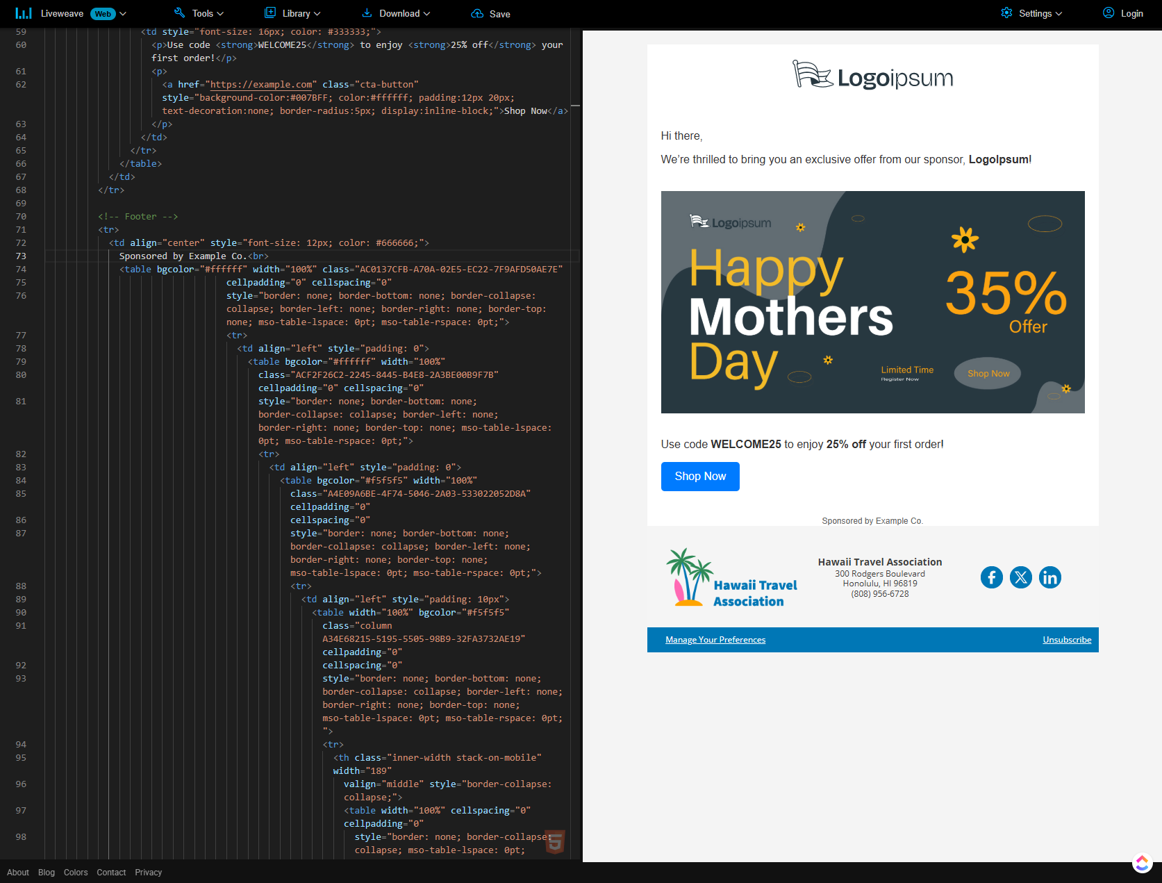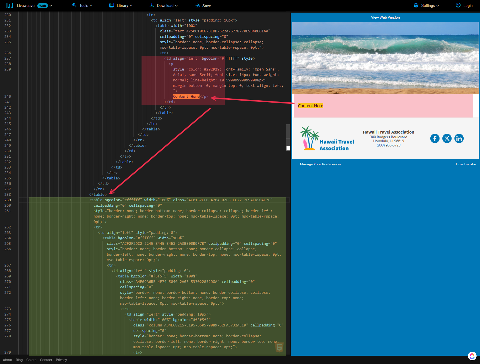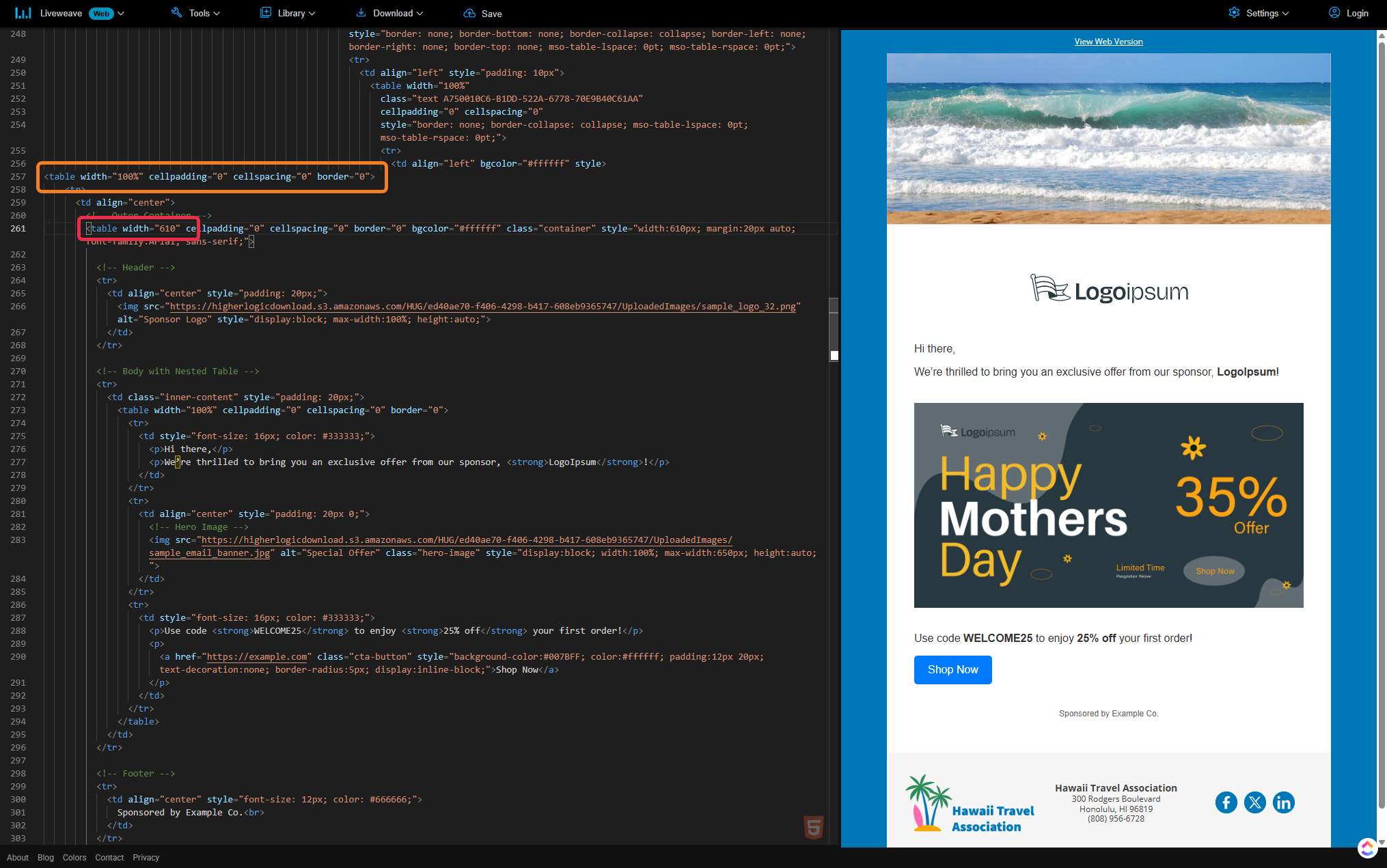 While we are here to answer generic questions or assist with the set up and sending of an HTML message, we are not authorized to make edits or changes to any third party HTML messages and it is up to the author of the code to make any changes or troubleshoot errors.