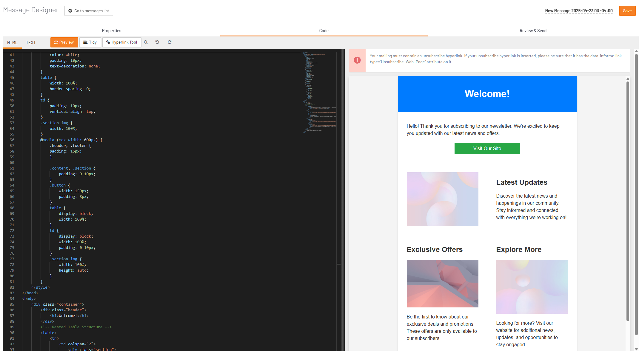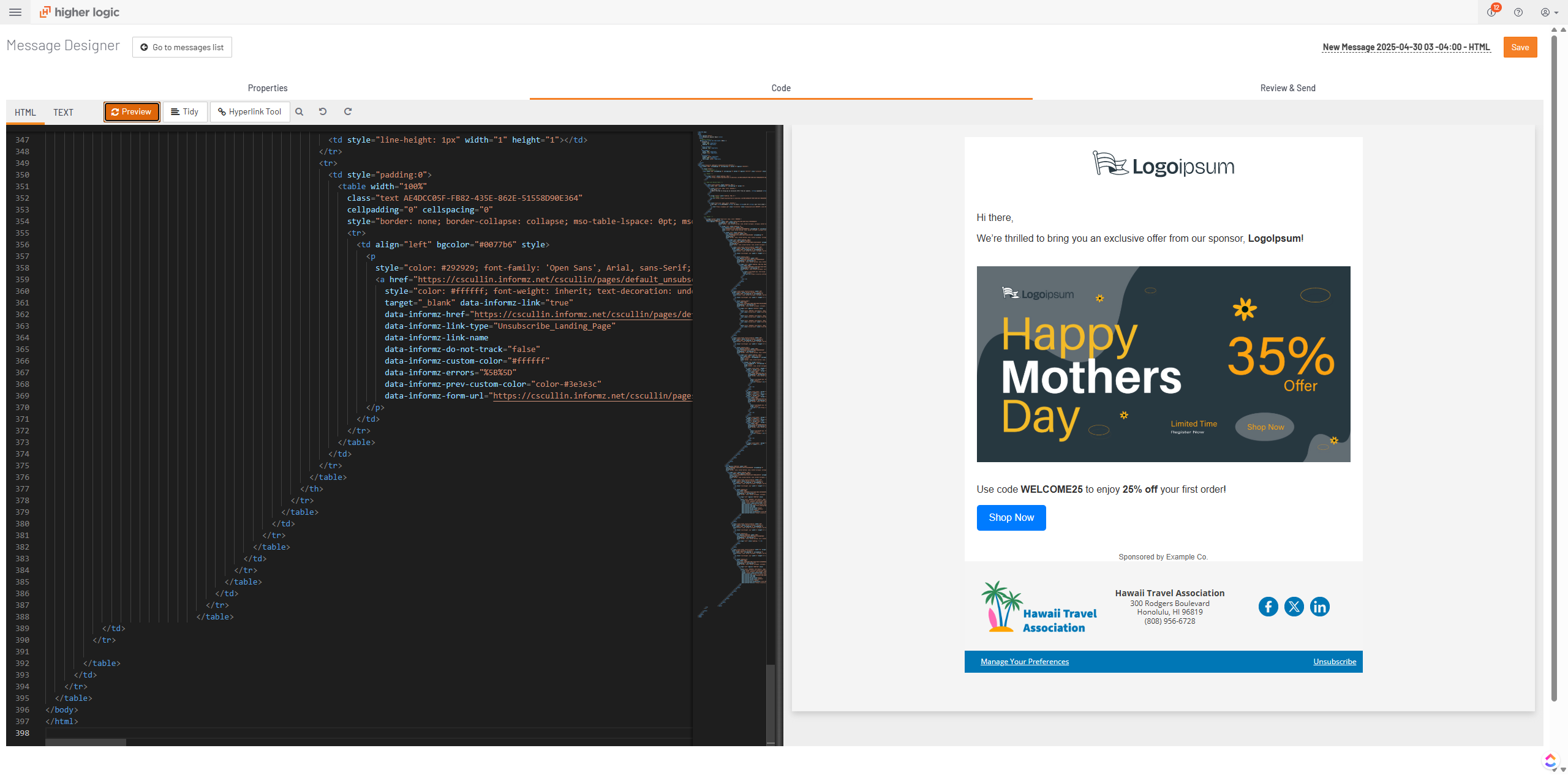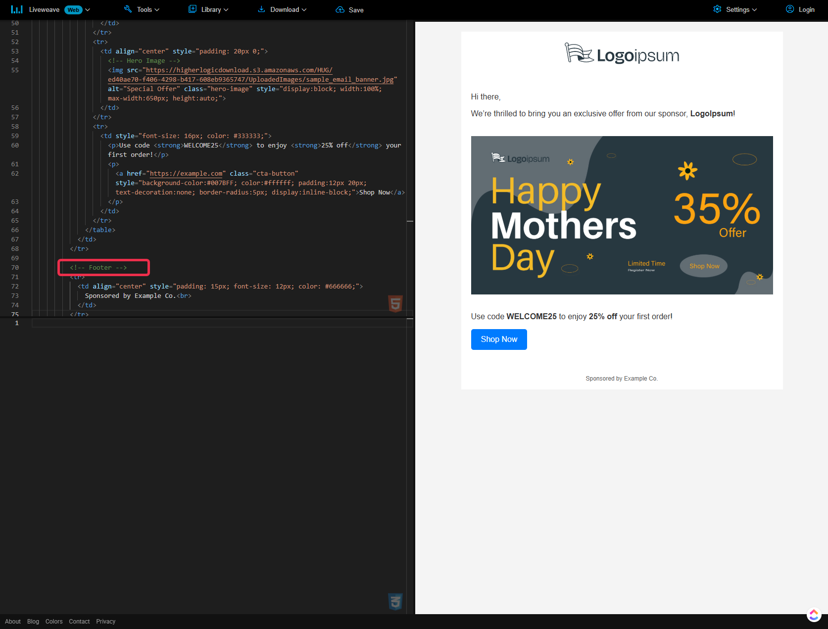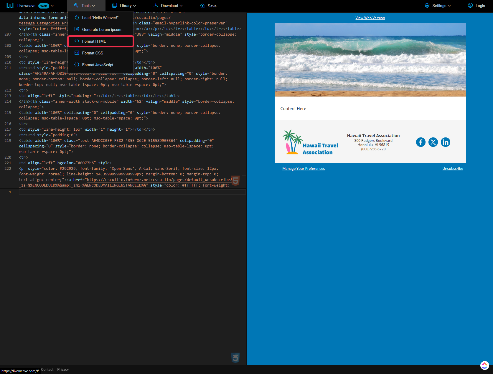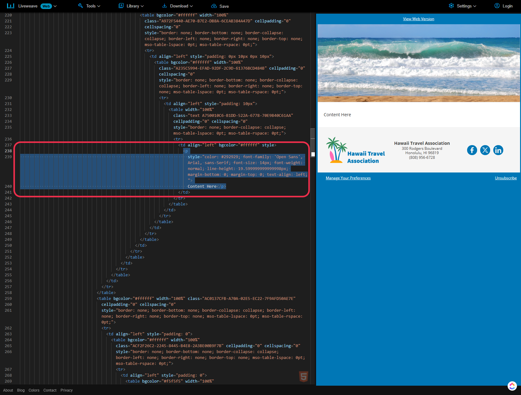 While we are here to answer generic questions or assist with the set up and sending of an HTML message, we are not authorized to make edits or changes to any third party HTML messages and it is up to the author of the code to make any changes or troubleshoot errors.