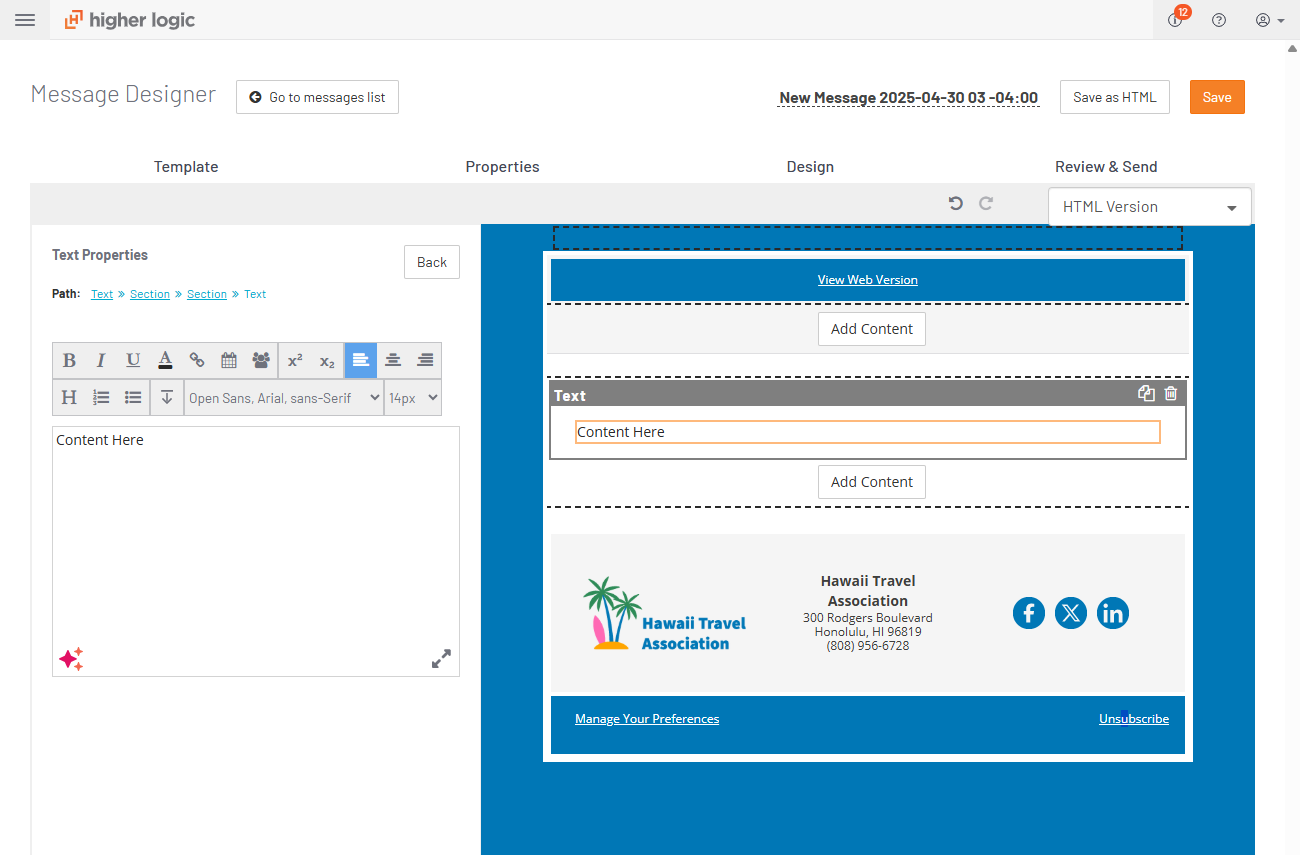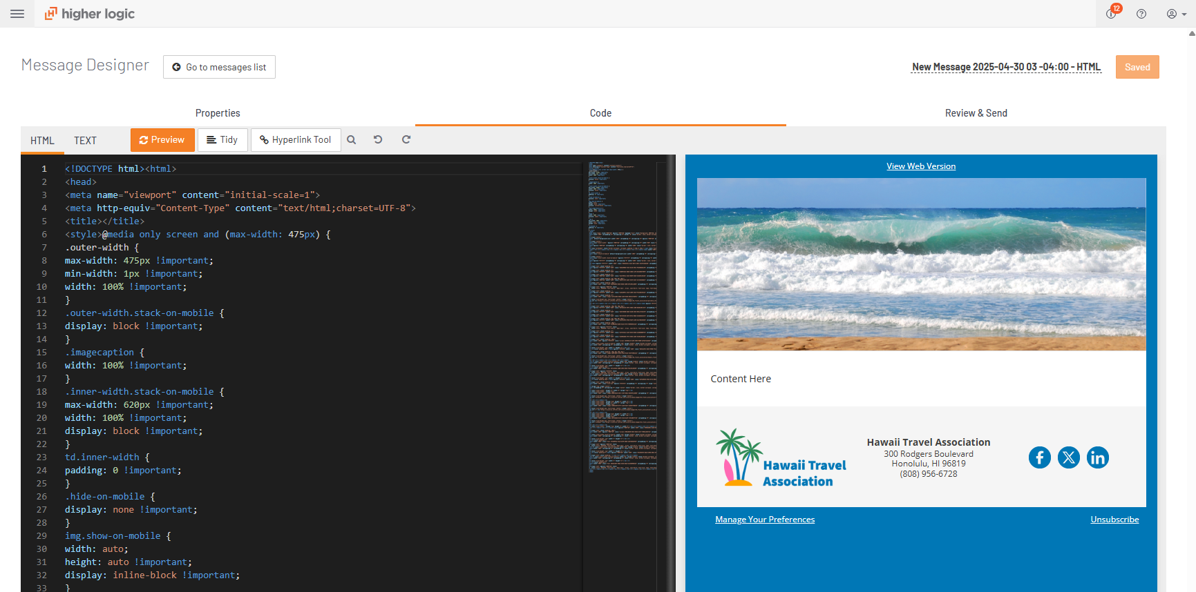 While Higher Logic provides templates for your use, and has an intuitive drag and drop editor with the ability to create custom layouts, sometimes there will be a need or desire to use your own HTML template, for example, provided by a 3rd party, created in a program like Dreamweaver or designed by your own team in-house.